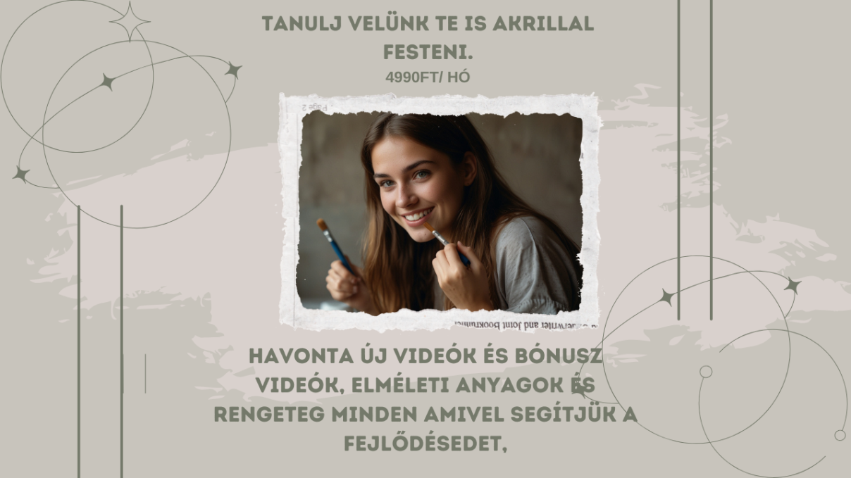 Élvezd festésvideóinkat, amelyekkel fejlesztheted technikáidat – csak előfizetőink számára! + a havi 1 bónusz festés videót.
